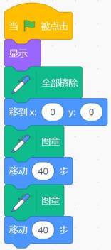 启动Scratch,默认角色小猫的脚本如下所示,运行后能在舞台上看到几只”猫”。()