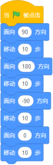 观察下面脚本,角色初始时面向90度方向,运行脚本后,角色一共改变了()次方向。