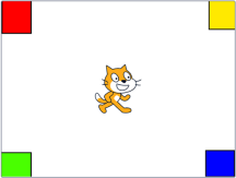 在Scratch中坐标(-100,-100)在背景舞台的()。