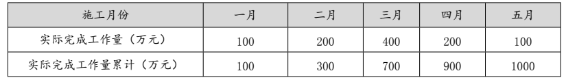 案例三【背景资料】某工程项目招标控制价为2000万元,中标价格为1900万元。其中甲供材900万,安全文明施工费200万。工期12个月,竣工日期2012年10月30日,承包合同另外规定:(1)预付比例为合同价款的20%,主要材料所占比例为40%;(2)工程预付款从未完施工工程尚需的主要材料及构件的价值相当于工程预付款数额时起扣,从每次中间结算工程价款中,按材料及构件比重抵扣工程预付款,至竣工之前全部扣清;(3)第一个月完成了土方工程。该项目土方工程量为5000m³,投标综合单价为20元/m³,招标控制综合单价为28元/m³。合同约定,当工程发生工程变更后的工程实际数量超过(或少于)合同工程量所列数量的15%时,该分项工程单价予以调整,施工中由于设计变更调整为4000m³。(5)工程保修金为合同总价的3%,在最后两次支付进度款时平均扣除,工程保修期为正常使用条件下,建筑工程法定的最低保修期限。事件一:经业主工程师代表签认的B承包商实际完成的建安工作量价款(1—5月份)见下表。