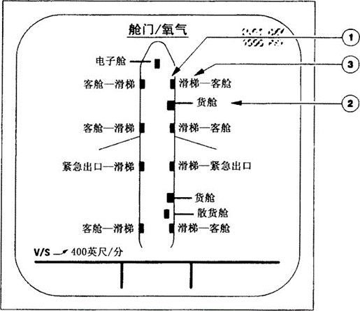 44.图中③为滑梯指示,当滑梯解除预位并且舱门关时:-
