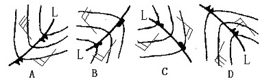 169、单选 如图是南北半球冷、暖锋的大体走向和气流分布,请问其中错误的是()。