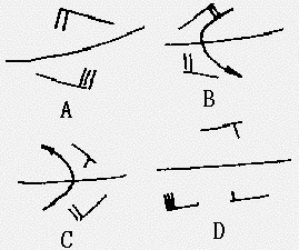 58、单选 图是北半球几种气流切变分布,请问其中气流切变分布错误的为()。
