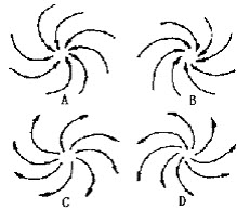 6、单选 请问图为地面气旋、反气旋流场示意图,B图为()。