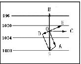 134、单选 图为自由大气层中地转风关系示意图,试指出图中矢量OB为()。