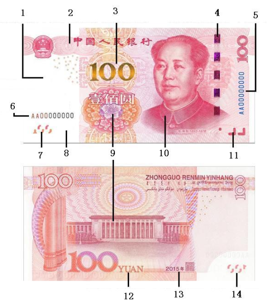 66.第五套人民币2015年版100元纸币,3号位是( )防伪特征。