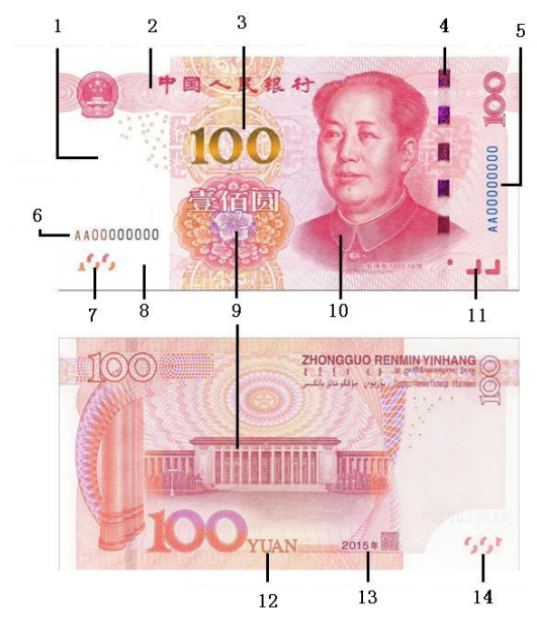 69.第五套人民币2019年版20元纸币,( )号位的防伪特征可以通过手触摸鉴别。