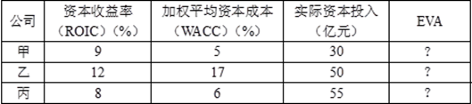 37.某分析师希望采用经济附加值( )模型衡量甲、乙和丙三家公司的经营绩效,计算后得到以下数据。