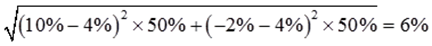 解析:未来一年户外用品生产公司的预期收益率为10%×50%+(-2%)×50%=4%,标准差为: