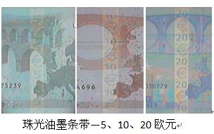 第一版欧元纸币小面额的背面采用珠光油墨印刷图案,上面印有内容()。