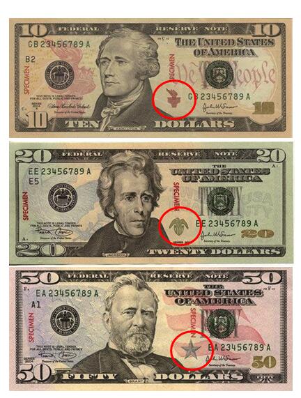 美元新版彩钞各面额中,()面额采用了光变油墨面额数字防伪特征。