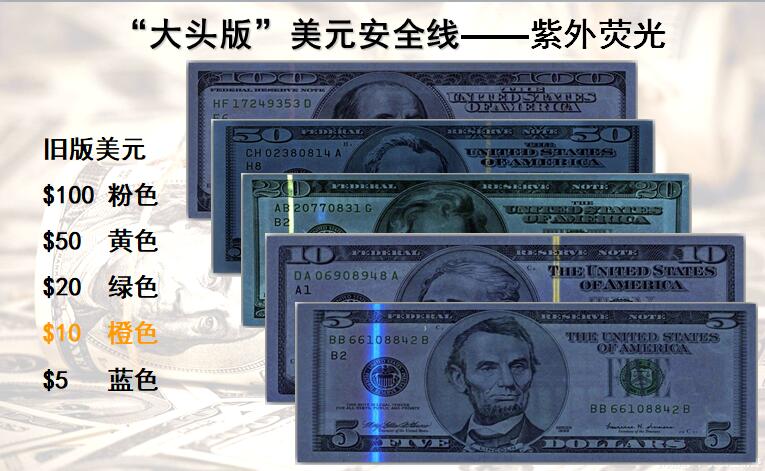 1996版(大头版)美元,随面额变化而变化的特征包括()。