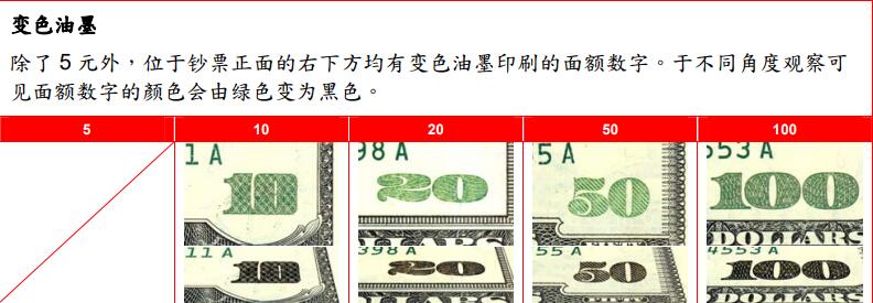 美元新版彩钞各面额中,()面额采用了光变油墨面额数字防伪特征。