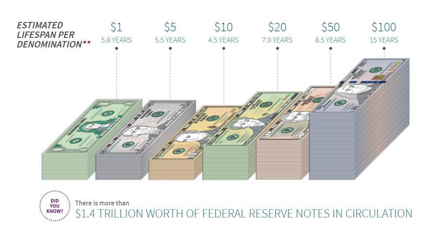 100美元理论流通寿命约()年。