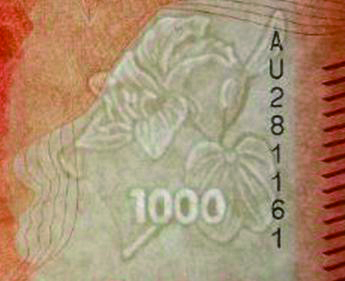 2018系列港币1000元券的光变开窗安全线透光观察可见有()图案。