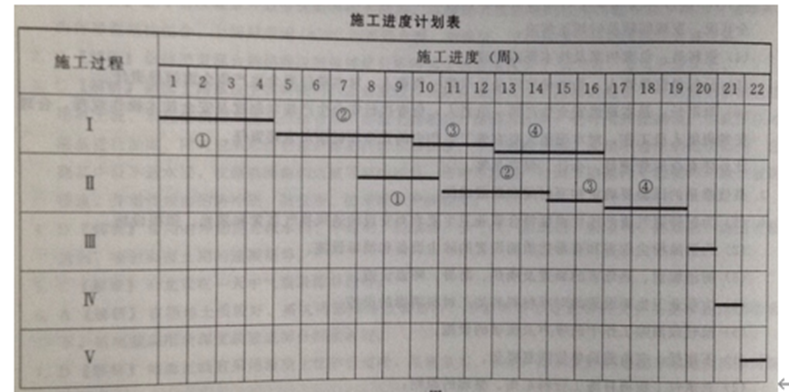 而III,IV,V不分施工段连续施工,持续时间均为一周。项目部按各施工段持续时间连续,均衡作业,不平行,搭接施工的原则安排了施工进度计划(表型如表4-2)