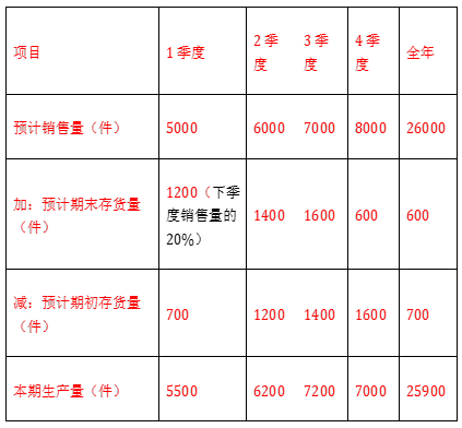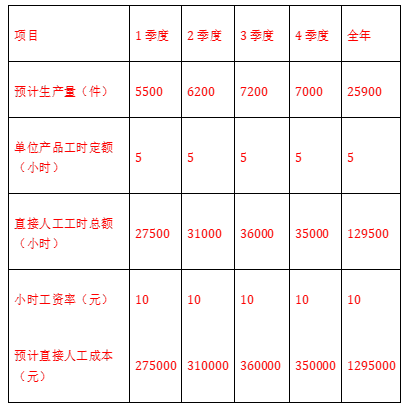 3【题干】某企业根据销售预测,对某种产品2015年各季度的销售量做出如下预计:2015年各季度销售量依次分别为5000件、6000件、7000件、8000件.每季度产成品期末存量为下季度销售量的20%;2015年年初和2015年年末的产成品库存量分别为700件和600件;单位产品的材料消耗定额为10千克/件,单位产品工时定额为5小时/件,小时工资率为10元/小时.要求:【问题1】【简答题】根据以上资料编制2015年该企业该种产品的生产预算和直接人工预算.2015年某产品生产预算