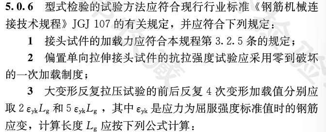 251、接头型式检验试验时,型式检验的试验方法应符合现行行业标《钢筋机械注接技术规程》的有关规定,并应符合下列哪些规定( )。