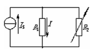 在如图所示的电路中,当电阻R2增加时,电流I将( )