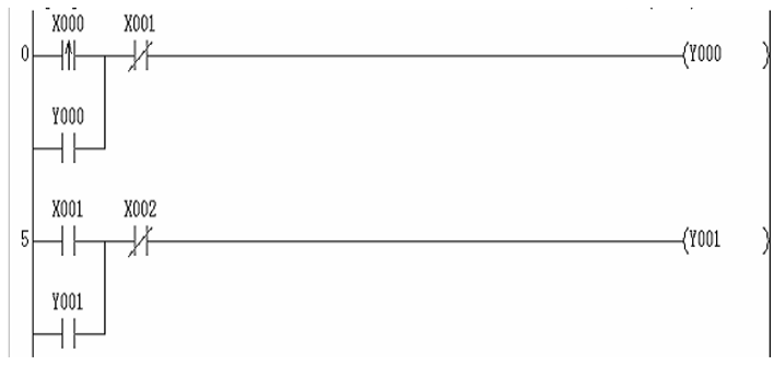 可编程序控制器程序中,第一行和第二行程序功能相比( )。