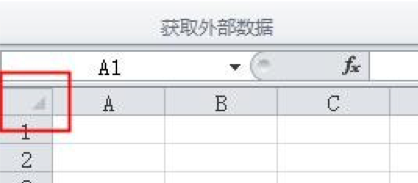 15.在 Excel 2010 中,在行号1 和列号A 交汇处,有一个按钮,如下图所示,该按钮的功能是( )。