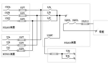 1.5.15.第15题:下图是BP-2B母差保护失灵出口回路图,图中虚框含义正确的是()