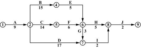 5、在下面的双代号网络图中,H工作有( )个先行工作。