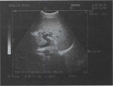 46.患者,男性,30岁,临床拟诊急性胆囊炎,声像图表现下列哪一项有特异性()