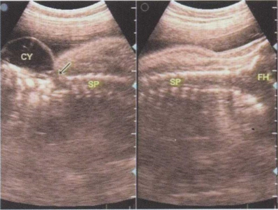 49.男,50岁,右上腹疼痛,乏力,食欲缺乏。结合超声声像图,诊断为()