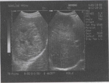 48.男,57岁,慢性乙肝多年,现上腹痛,食欲缺乏,AFP>500,结合超声声像图,诊断为()