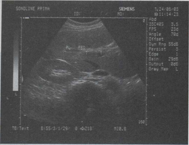 34.女,34岁,经常反复发作剧烈的右上腹痛,加重1天,声像图如图所示,最可能的诊断为()
