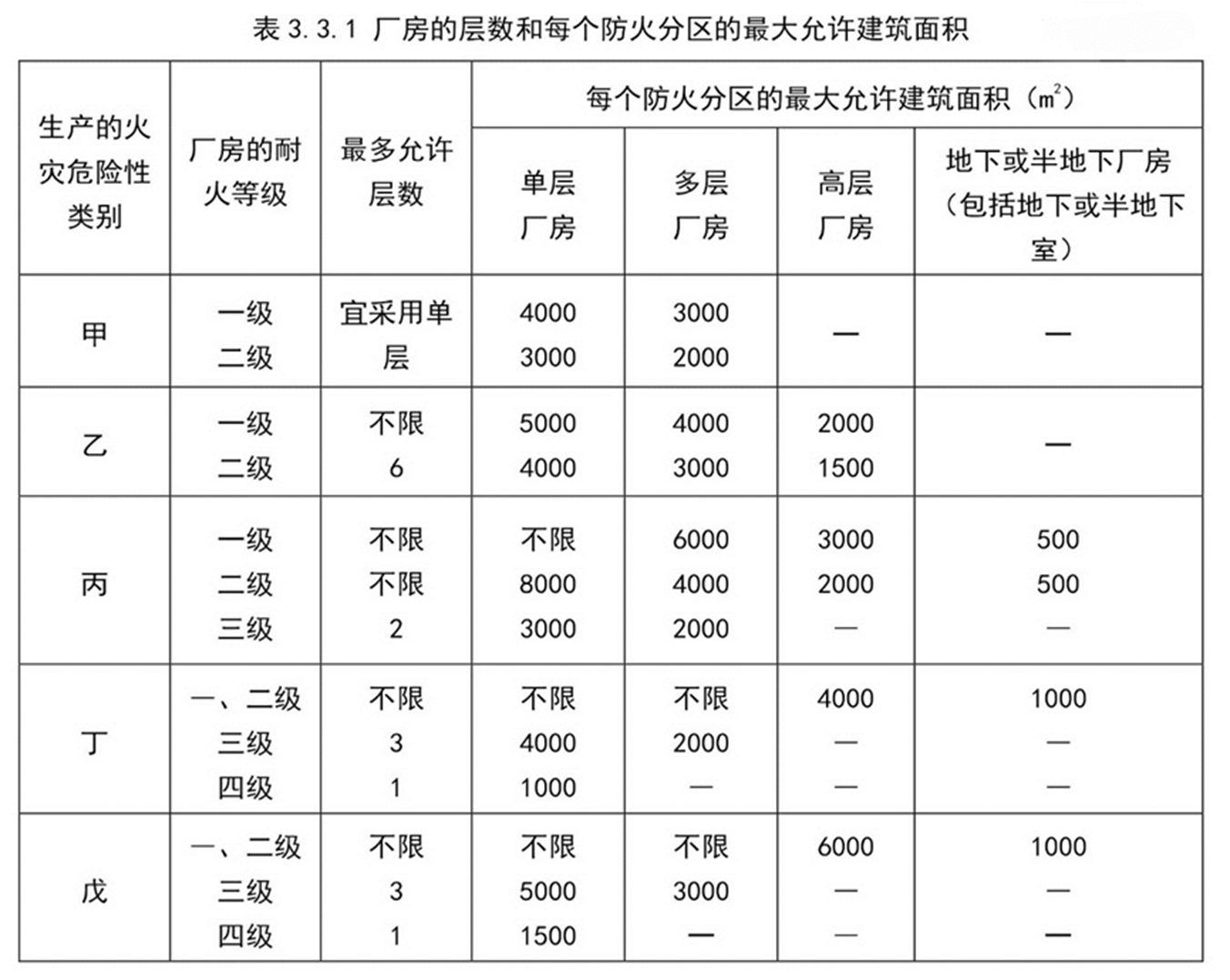 多层活性炭制造厂房,防火分区最大建筑面积为3000㎡
