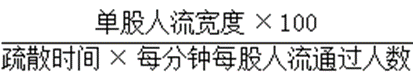 因为平坡地面每分钟每股人流通过人数为43人/min,阶梯地面每分钟每股人流通过人数为为37人/min,所以有[(0.55x100)/(3x37) ] ≈0.5,即正确答案为B。第一节安全疏散基本参数