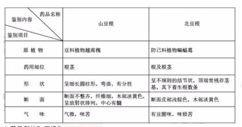 山豆根与北豆根为名称相近的药材,下表所列药材鉴别内容存在错误的鉴别项目有()