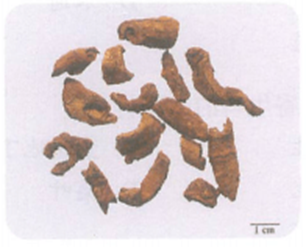 [A1型题]呈丝条状,外表黄褐色或黄棕色,内表面暗黄色或淡棕色,味极苦的饮片为