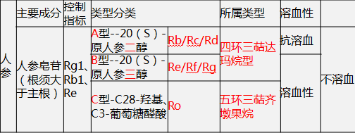 人参皂苷三醇型,苷元达玛烷型