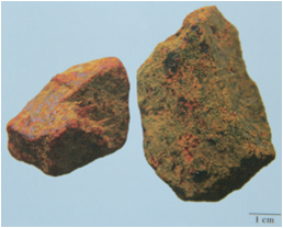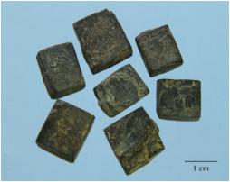 解析:图A为雄黄;B为滑石;C为自然铜;D为芒硝;E为硫磺。雄黄:为硫化物类矿物雄黄族雄黄。主含二硫化二砷(As2S2)。自然铜:为硫化物类矿物黄铁矿族黄铁矿。主含二硫化铁(FeS2)。芒硝:为硫酸盐类矿物芒硝族芒硝,经加工精制而成的结晶体。主含含水硫酸钠(Na2SO4•10H2O)。硫黄:为自然元素类矿物硫族自然硫;或用含硫矿物经加工制得。主含硫(S)。滑石:为硅酸盐类矿物滑石族滑石。习称“硬滑石”。主要含含水硅酸镁[Mg3(Si4O10)(OH)2]。