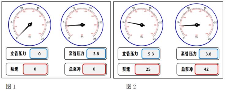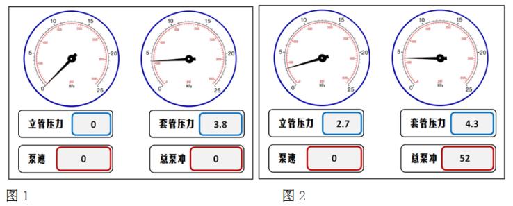 15.[ZJJK31-01-X]钻柱中安装钻具回压阀,关井后压力如图1所示,已知在泵速25冲/分钟时的循环压力为2.8MPa,采用循环法求取关井立管压力状态如图2所示,现在的压力稳定则关井立管压力为( )MPa。