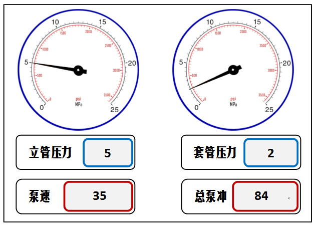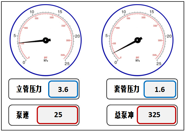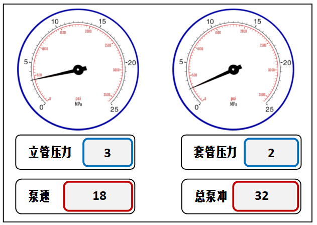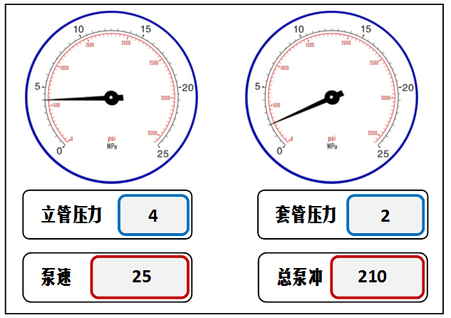 141.[ZJJK08-01-X]发生溢流关井后,求取的立压与套压如图所示,之前测得的压井泵速25冲/分钟时的循环立压为3MPa,则进行压井作业时的初始循环总压力为( )MPa。