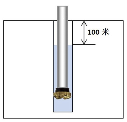 56.[ZJJK02-01-X]如图所示,某直井使用密度1.17g/cm3的钻井液,地层盐水侵入环形空间,盐水密度1.07g/cm3,此时环空静液压力下降约( )MPa。