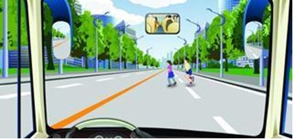 49.突然出现这种情况,驾驶人要及时减速或停车避让。(图4.9.4)