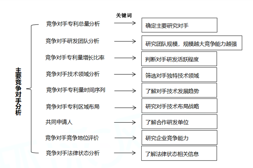解析:本题考察的是专利分析基础。竞争对手技术领域分析是利用竞争对手分析样本数据中的分类号或主题词对应的技术内容的专利数量的多少或占总量的比例,进行统计和频次排序分析,研究竞争对手发明创造活动中最为活跃的技术领域以及相关技术领域中的重点技术。竞争对手基础领域分析分析的是样本中的分类号和主题词,地域、发明人、专利申请人均不符合题意。故本题正确答案为AB。【思路点拨】对于主要竞争对手分析内容较多,不易区分,建议考生采取关键词记忆法。