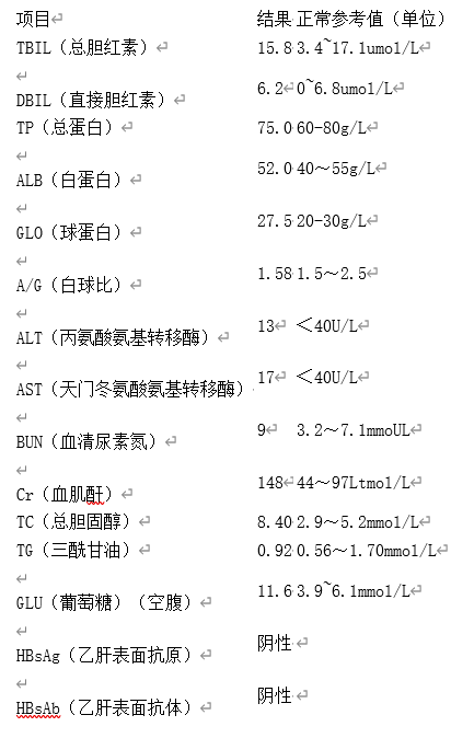患者,女,43岁,在单位例行的年度体检中,发现体检报告单(见下表)中个别数据异常,根据报告单对体检结果描述正确的是