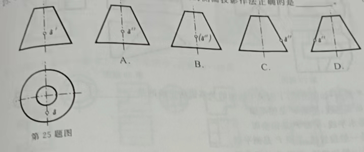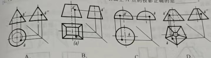 64.(2020年浙江省第五次联考)圆台上A点的侧面投影作法正确的是( )