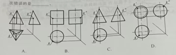 60.(2020年浙江省第一次联考)已知几何体表面上点A的正面投影,求其另两个投影,作图方法错误的是( )