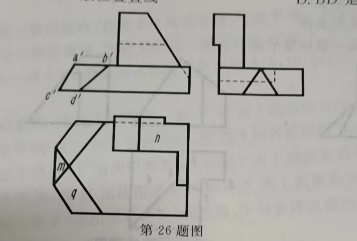 66.(2022年预测)如图所示,下列关于线、面的投影,表述正确的是( )