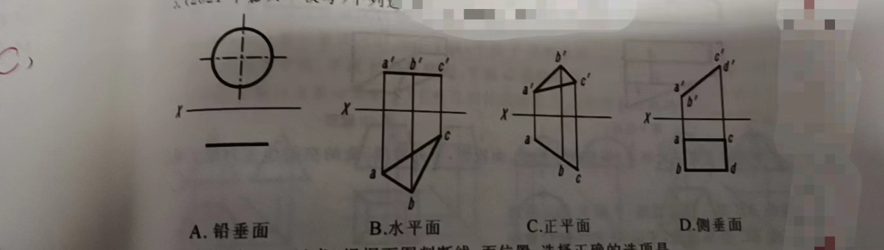 50.(2021年浙江省第二次联考)已知下列线和面的两面投影,其第三面投影中,反映正投影特性是收缩性的是( )
