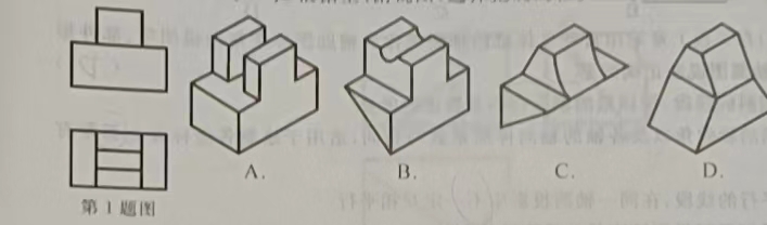 24.(2019年浙江省高职考)根据主视图和俯视图(如图所示),下列轴测图正确的是( )