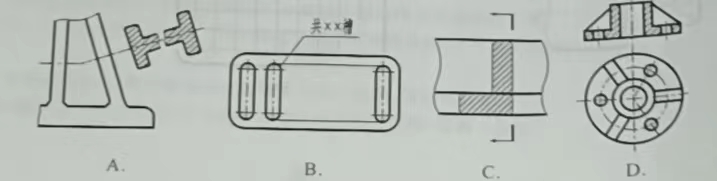 198.(2021年温州一模考)装配图中,对薄的垫片等不易画出的零件可将其涂黑,这种表达方法是( )
