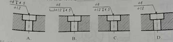 206.(2020年嘉兴二模考)有一个沉降孔,沉降孔的直径为6mm,大孔的直径为12mm,大孔深度为4.5mm,下列标注正确的是( )